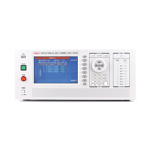 同惠TH9010A并行四通道耐压测试仪。TH9010系列是经过多年电器安规测试仪器的开发经验所推出的多通道并行扫描耐压测试仪。一台单机可同时测量8个通道,按通道分别判断测试结果,相当于八台TH9310同时工作,既提高了产线的测试效率,又节约了产线空间。同时,该款仪器可以通过连接扫描器的方式将一台仪器很多扩展至8×16通道以满足客户的实际需求。